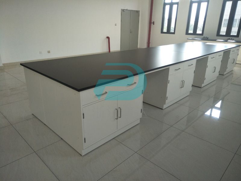 1、臺(tái)面:采用12.7mm厚實(shí)驗(yàn)室專用理化板,周邊加厚至25.4mm,倒圓角處理. ,防強(qiáng)酸強(qiáng)堿,耐磨耐高溫。不含任何有毒物質(zhì),無輻射。